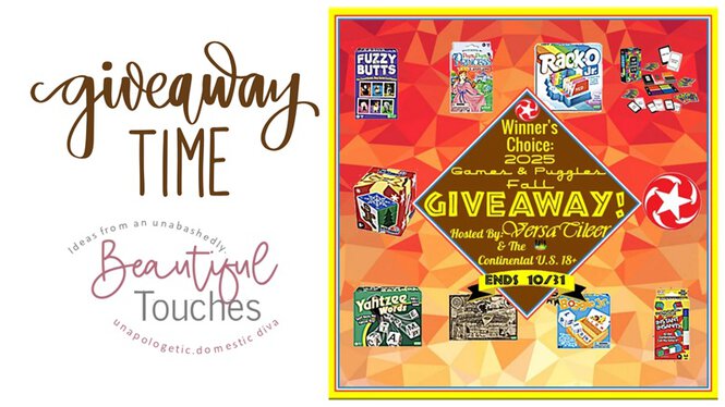 This giveaway/sweepstakes is in no way endorsed, affiliated, or associated with Facebook, Twitter or any other Social Media Networking Site. The giveaway consists of winner’s choice of $40 maximum between the choices from New 2025 Games and Puzzles of the selection of Fuzzy Butts™, Pretty, Pretty, Princess® Card Game, Rack-O® Jr., That Color Speaks To Me™, Twistables® Holiday Puzzle, Yahtzee® Words, Ouija® Salem Edition, Boggle® Jr. & Instant Insanity® from Winning Moves Games. This Giveaway is valid to Continental United States residents (Lower 48 contiguous states) only, Entrants must be 18+ years of age to enter. This giveaway event will end at 11:59 PM EST (10:59 PM CST) 10/31/2025. The winner will have 48 hours to email their information back to versatileer at gmail dot com or a new winner will be drawn, you may want to put this email address as safe as it could go to spam. The giveaway is not valid where prohibited! Once a winner is drawn and confirmed, the name will be announced on the Giveaway Tools form. Winning Moves Games will be responsible for sending the winners their prizes. Versatileer has been compensated to assist in furnishing the prize in this giveaway. By entering you are authorizing us to collect the information on the form below, this information is used only to contact the winner! No purchase necessary, Void where prohibited by law, and the number of eligible entries received determines the odds of winning. Winners are chosen randomly by a random winner selection method. More giveaway terms and conditions are listed: HERE. The sponsors are each responsible for shipping of the above prizes. No blog associated with this contest are responsible for prize fulfillment. If you would like to become a sponsor in a giveaway like this please email Jerry Marquardt at versatileer at gmail dot com. If you take an entry you must stay following for the entire contest or you will be disqualified.