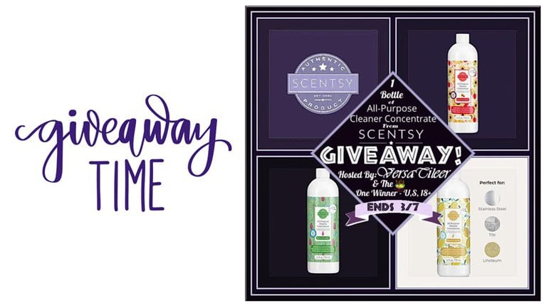 This giveaway/sweepstakes is in no way endorsed, affiliated, or associated with Facebook, Twitter or any other Social Media Networking Site. The giveaway is for: 1 bottle All-Purpose Cleaner Concentrate from Scentsy, ARV approximately $20. If the product value increases due to inflation, the product that was at the price will be allotted. The chosen product must match the value on the giveaway. This Giveaway is valid to United States residents only, Entrants must be 18+ years of age to enter. This giveaway event will end at 11:59 PM EST (10:59 PM CST) 03/07/25. The winner will have 48 hours to email their information back to versatileer at gmail dot com or a new winner will be drawn, you may want to put this email address as safe as it could go to spam. The giveaway is not valid where prohibited! Once a winner is drawn and confirmed, the name will be announced on the Rafflecopter form. Versatileer will be responsible for sending the winners their prizes. Versatileer has not been compensated in any form for this giveaway. By entering you are authorizing us to collect the information on the form below, this information is used only to contact the winner! No purchase necessary, Void where prohibited by law, and the number of eligible entries received determines the odds of winning. Winners are chosen randomly by Rafflecopter through the use of Random-dot-org. More giveaway terms and conditions are listed: HERE. The sponsors are each responsible for shipping of the above prizes. No blog associated with this contest are responsible for prize fulfillment. If you would like to become a sponsor in a giveaway like this please email Jerry Marquardt at versatileer at gmail dot com. If you take an entry you must stay following for the entire contest or you will be disqualified.