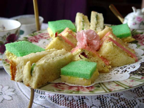 Little finger sandwiches and pastries on dainty plates…making sure that