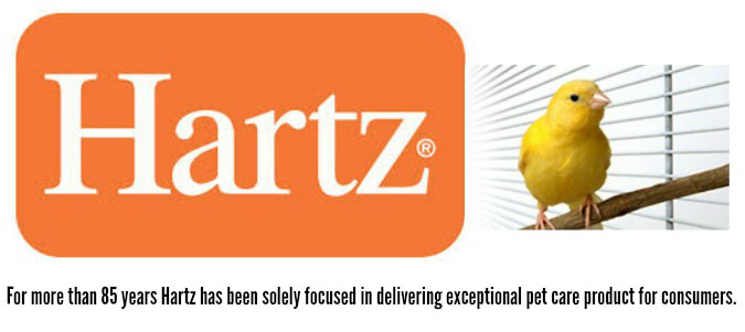 Today Hartz is 1,500 products strong—catering to dogs, cats, parakeets, canaries, parrots, cockatiels, finches, goldfish, tropical fish, reptiles, ferrets, chinchillas, guinea pigs, hamsters and rabbits.