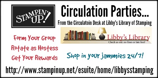 Be sure to send me a message via the Contact Me button at Libby’s Stamping, and let me know that you have formed a group, along with the names and addresses of each group member…BECAUSE, I will send a special little “something” to each hostess/host, in your group, the month after his or her Ccirculation Party is held.